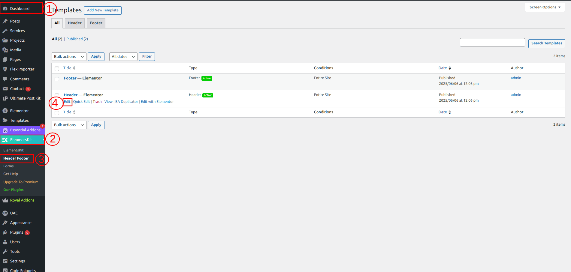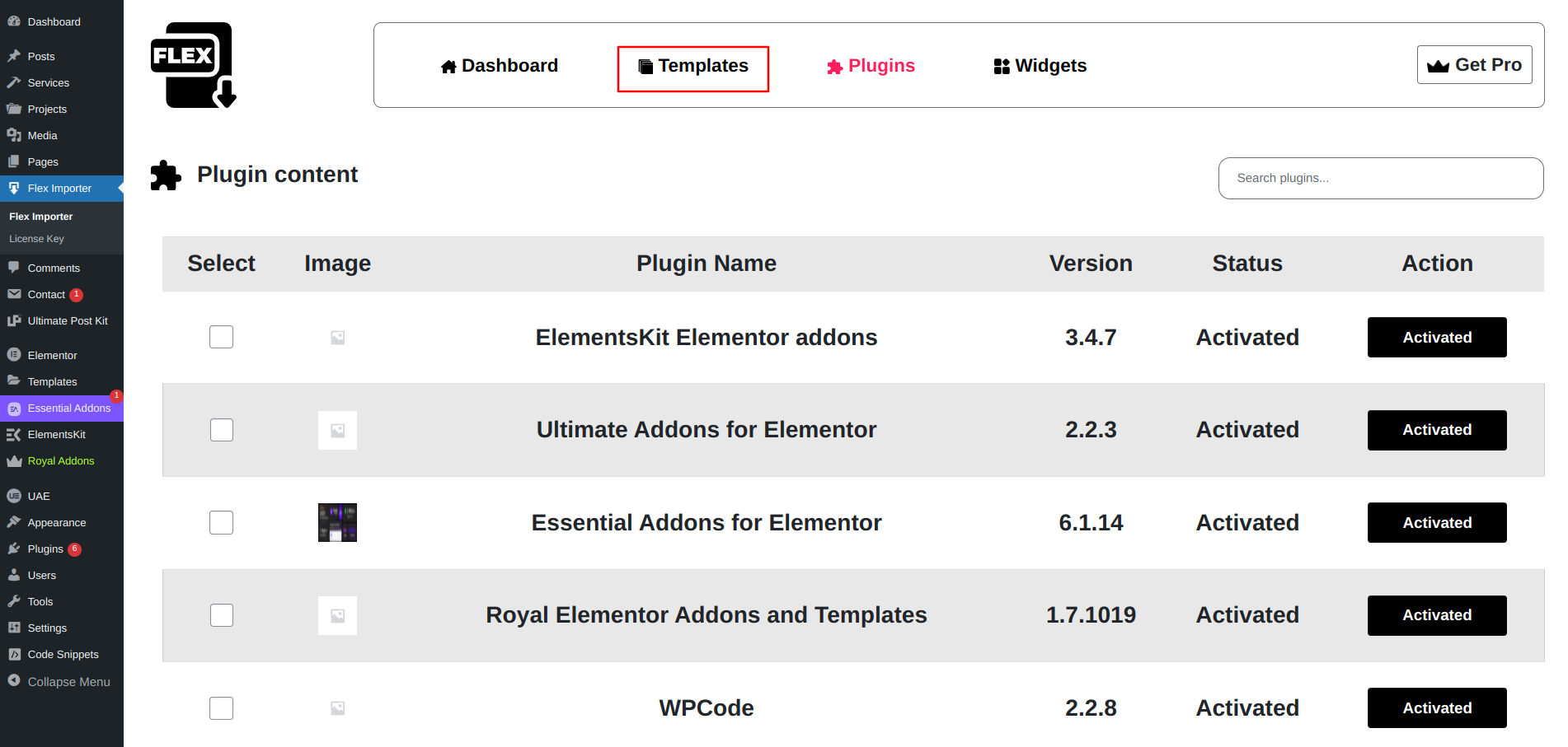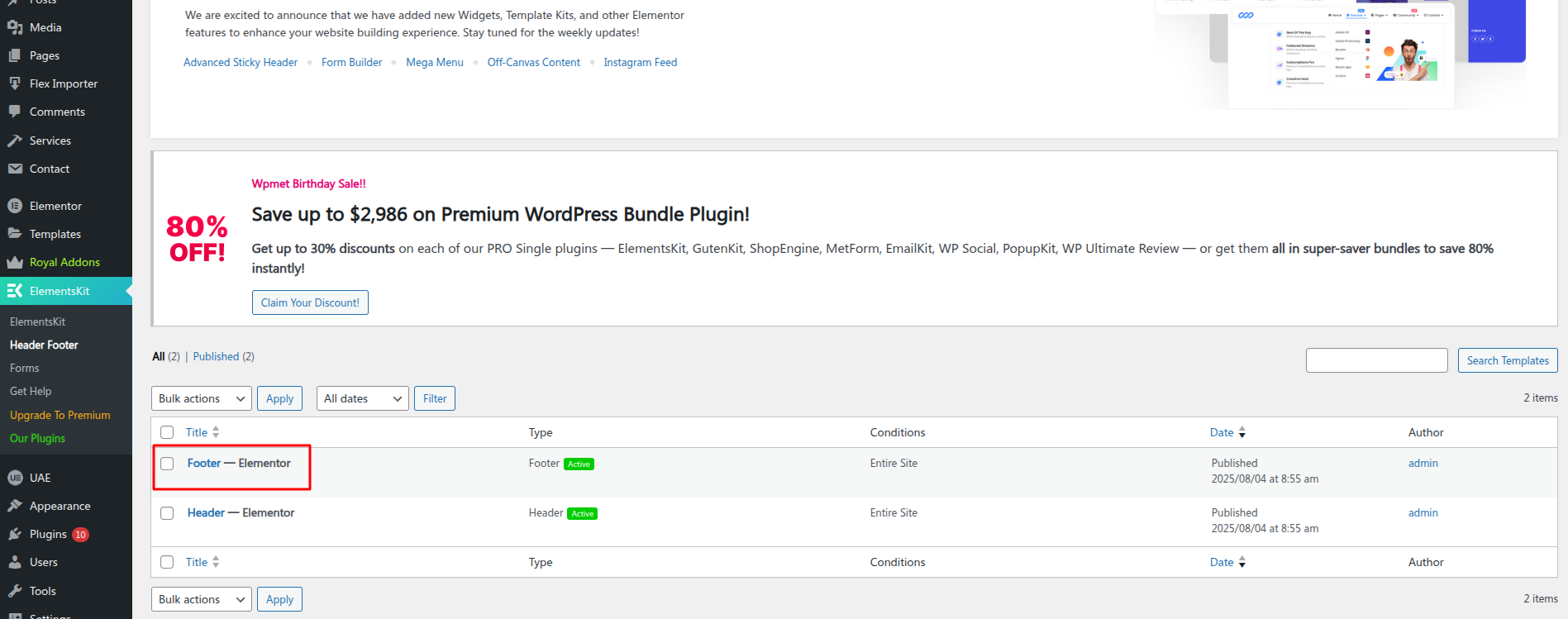 Screenshot: - Examples of templates are provided. Not to be utilised in production.