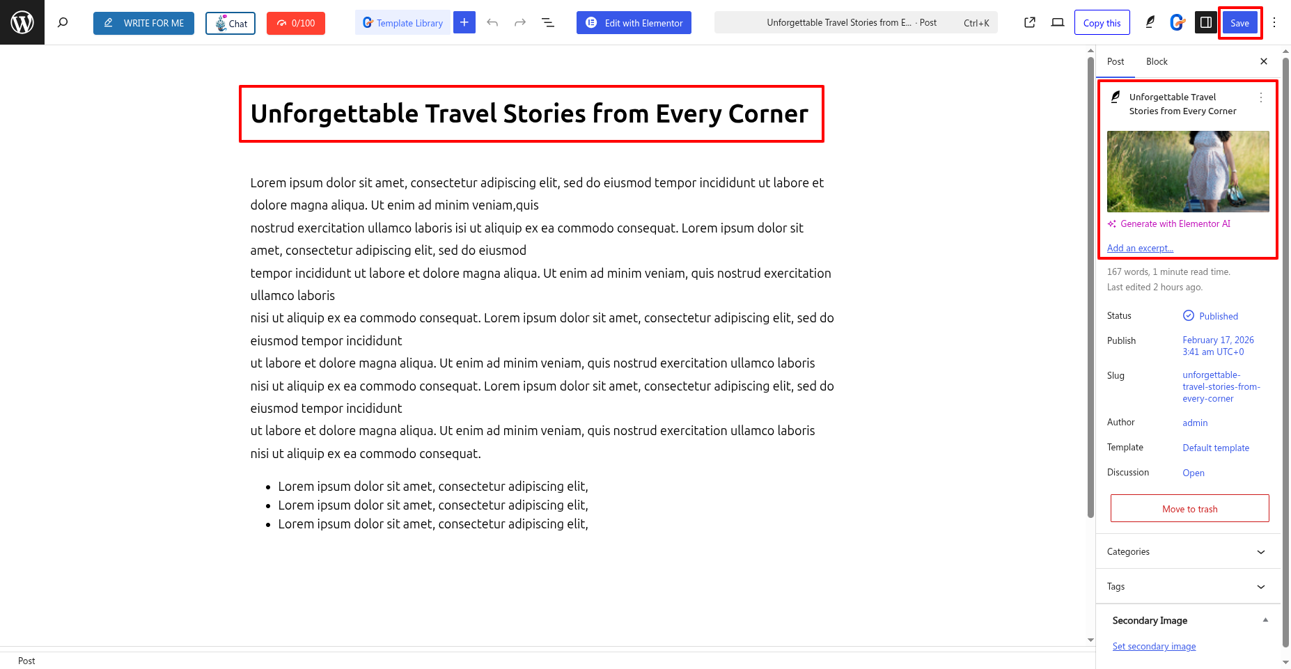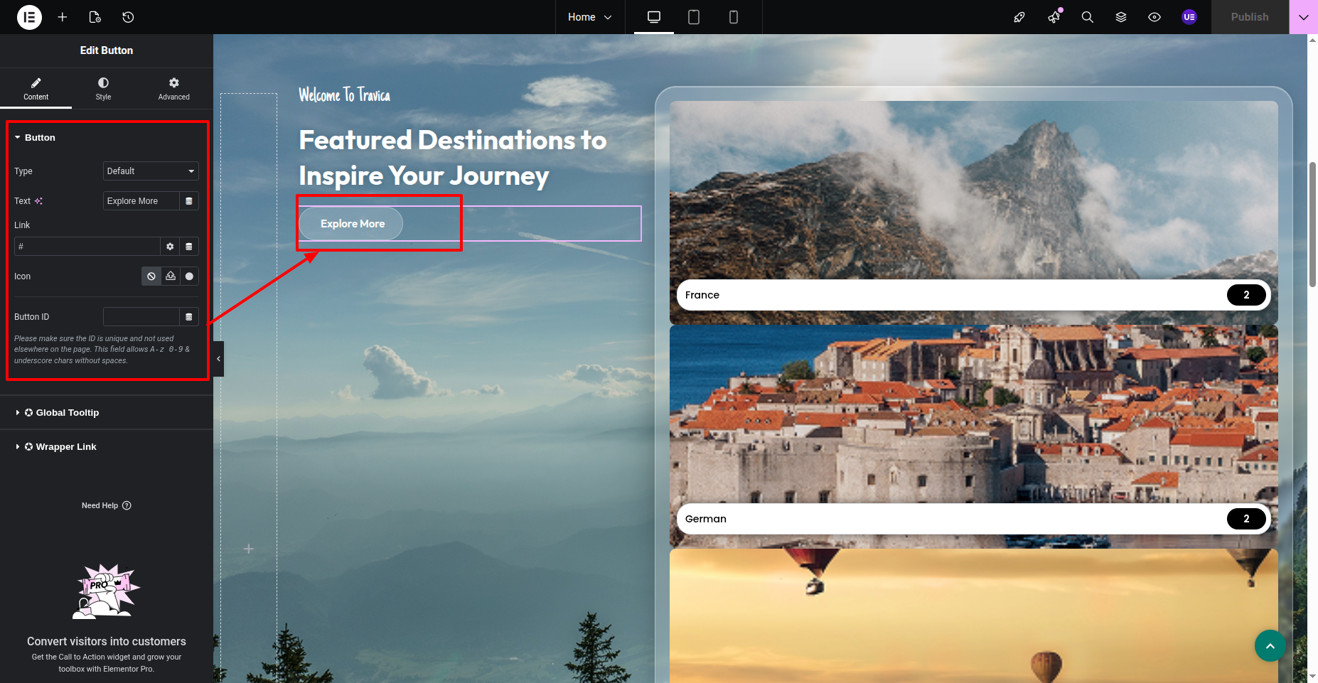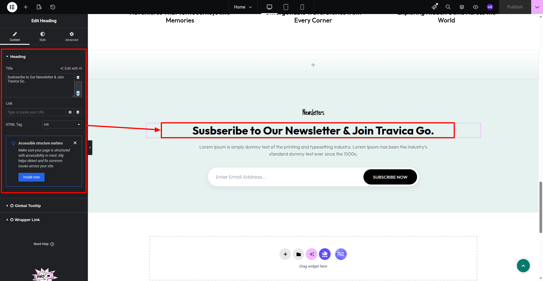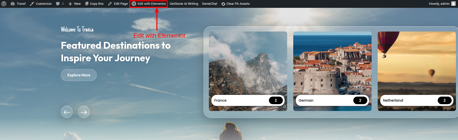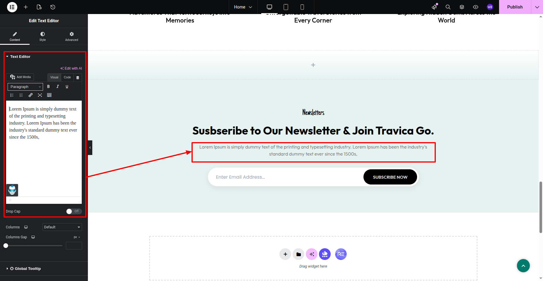 To Edit this Section, Click On the "Edit With Elementor" Button which will open the Elementor Widget editor.
