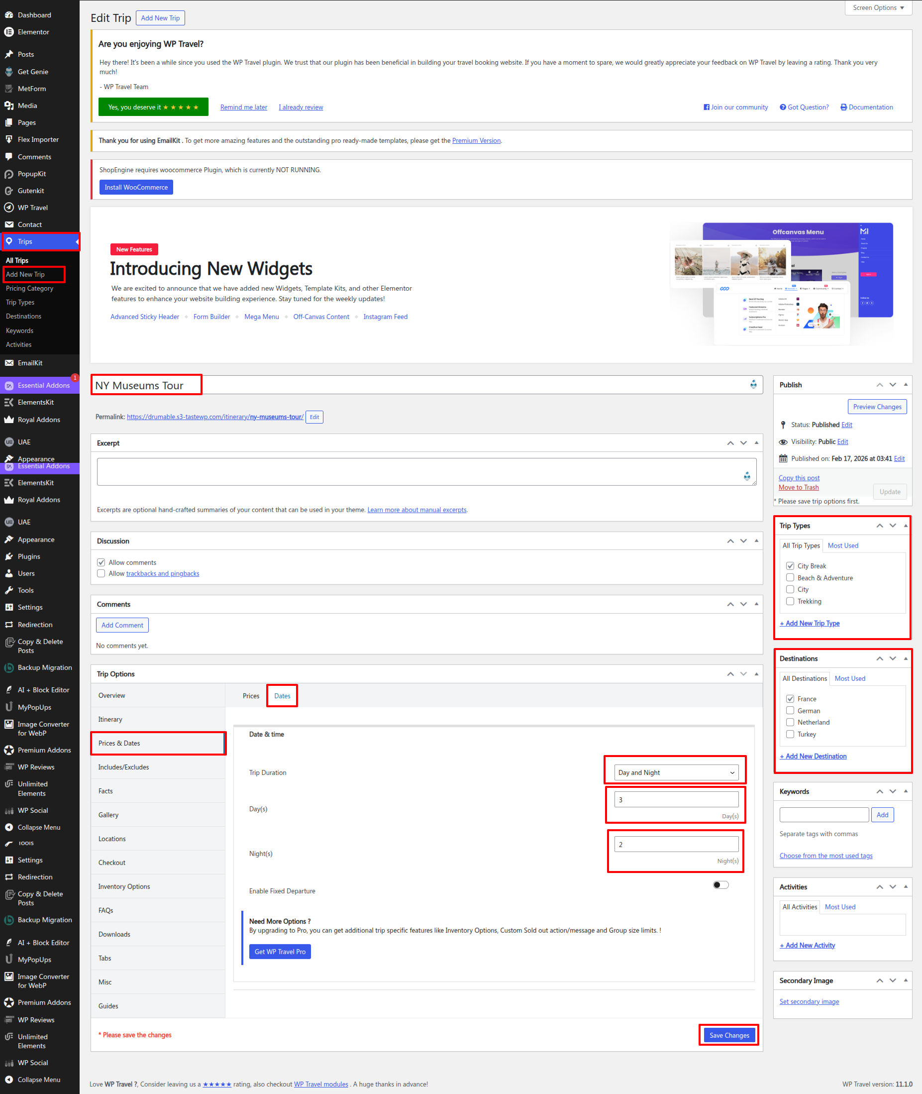 Setup Travica Section according to the instructions below.