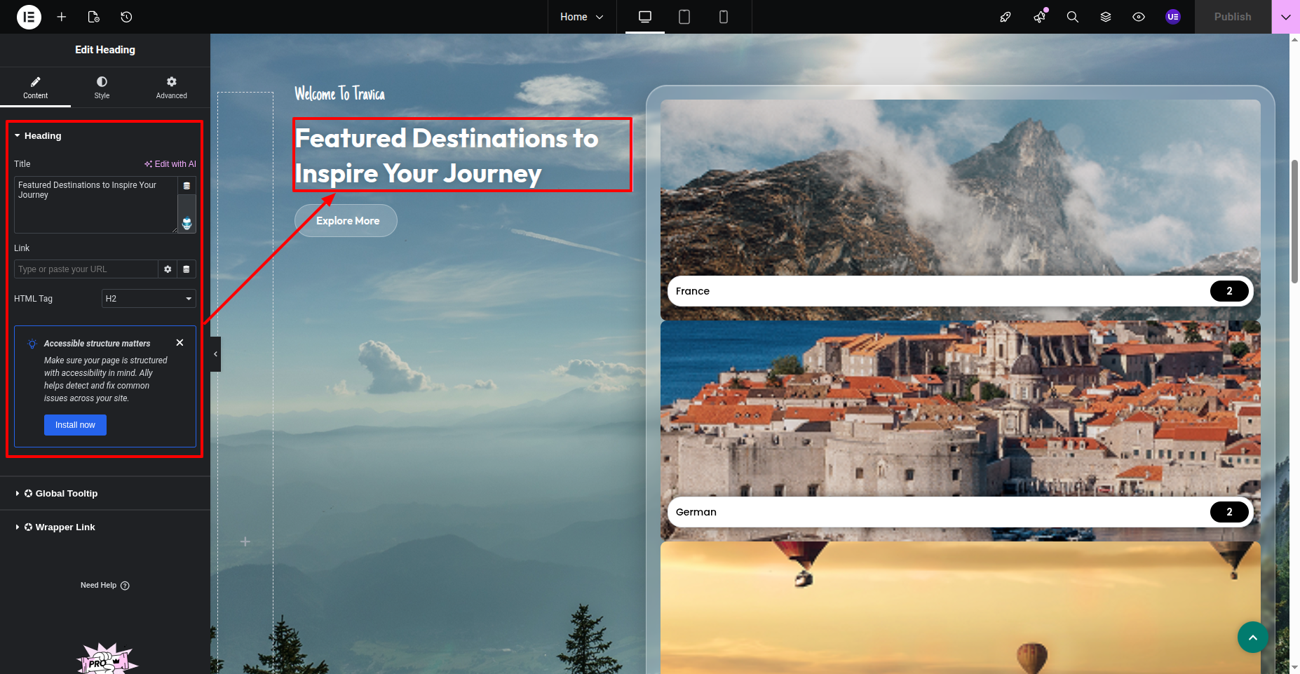 This is how you may set up and add the Header section.
