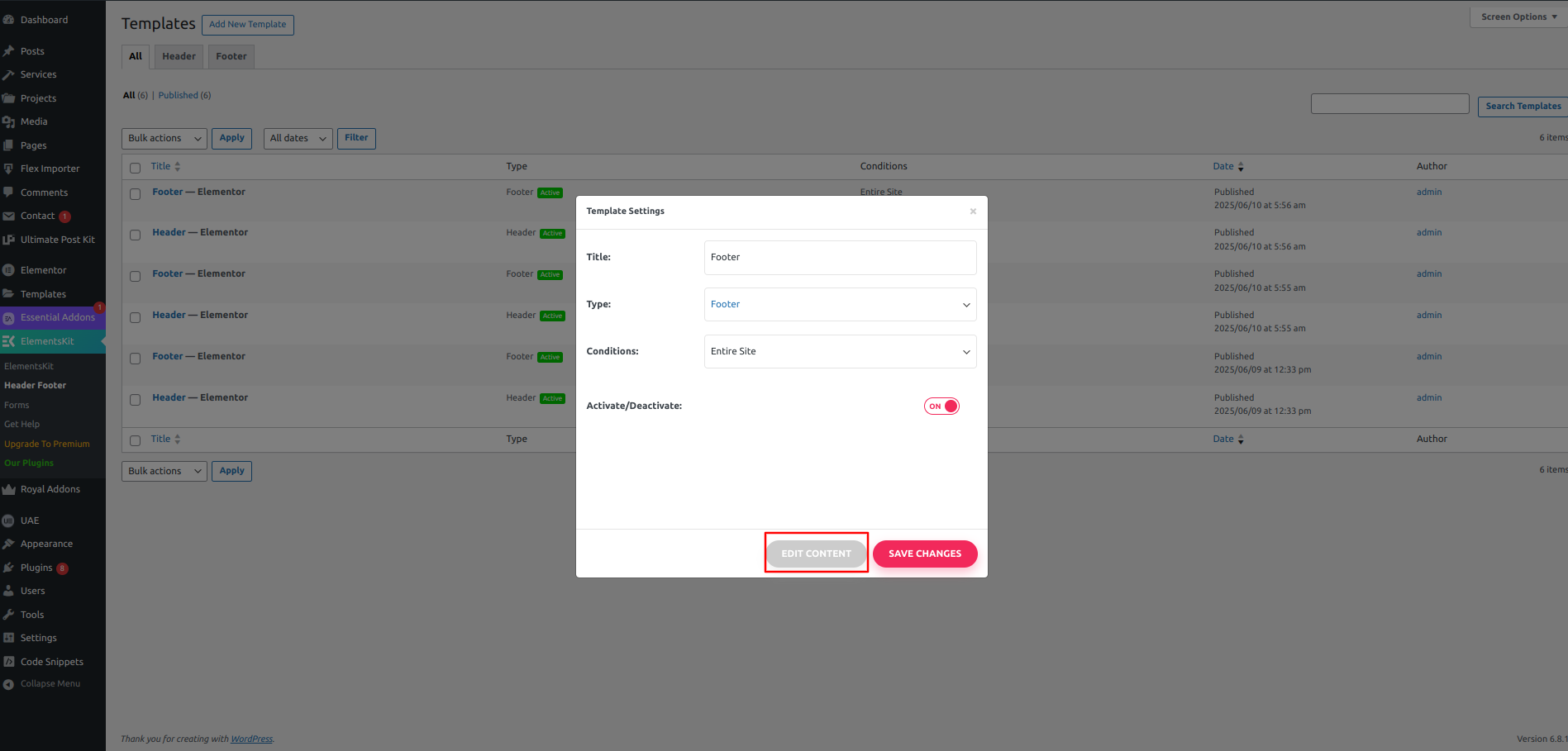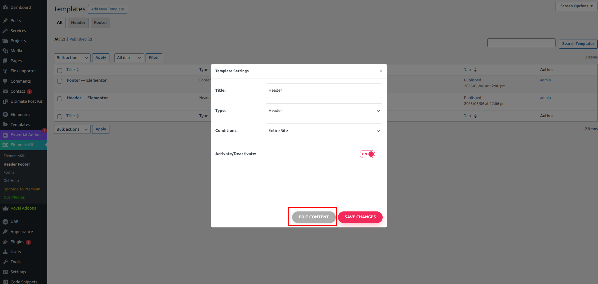 1) Go to Dashboard Elementskit Header Footer Edit.