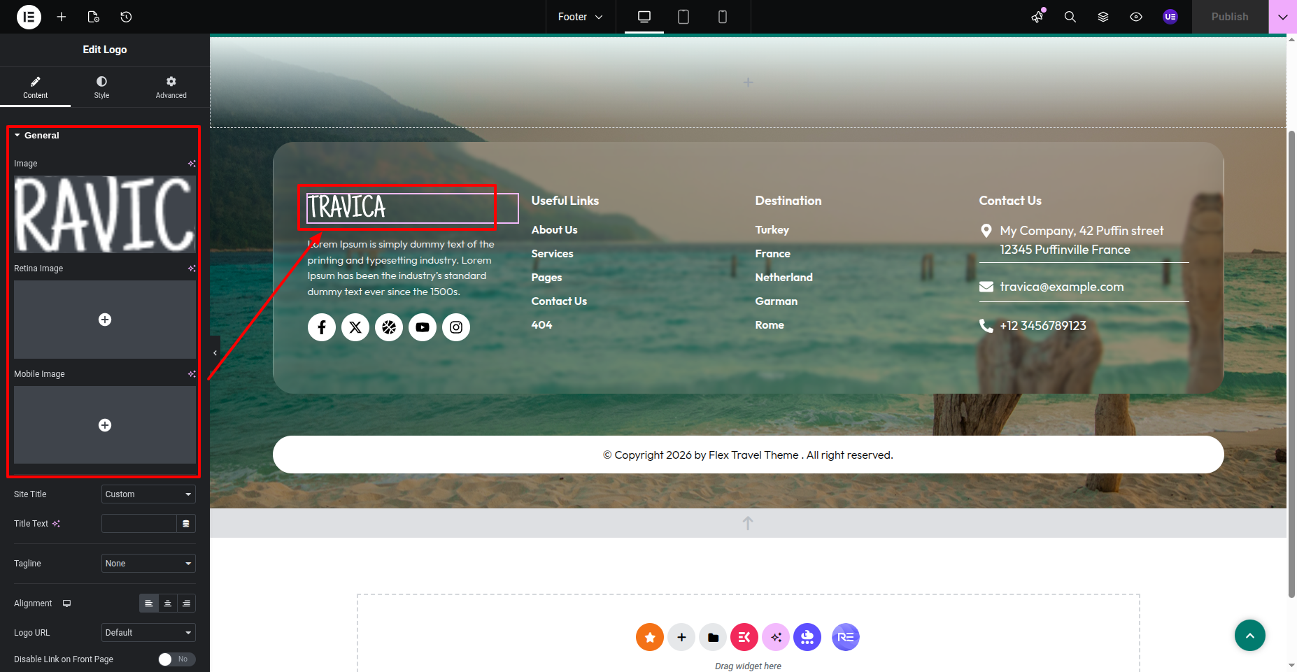 Go to the Dashboard Elementskit Footer Edit.
