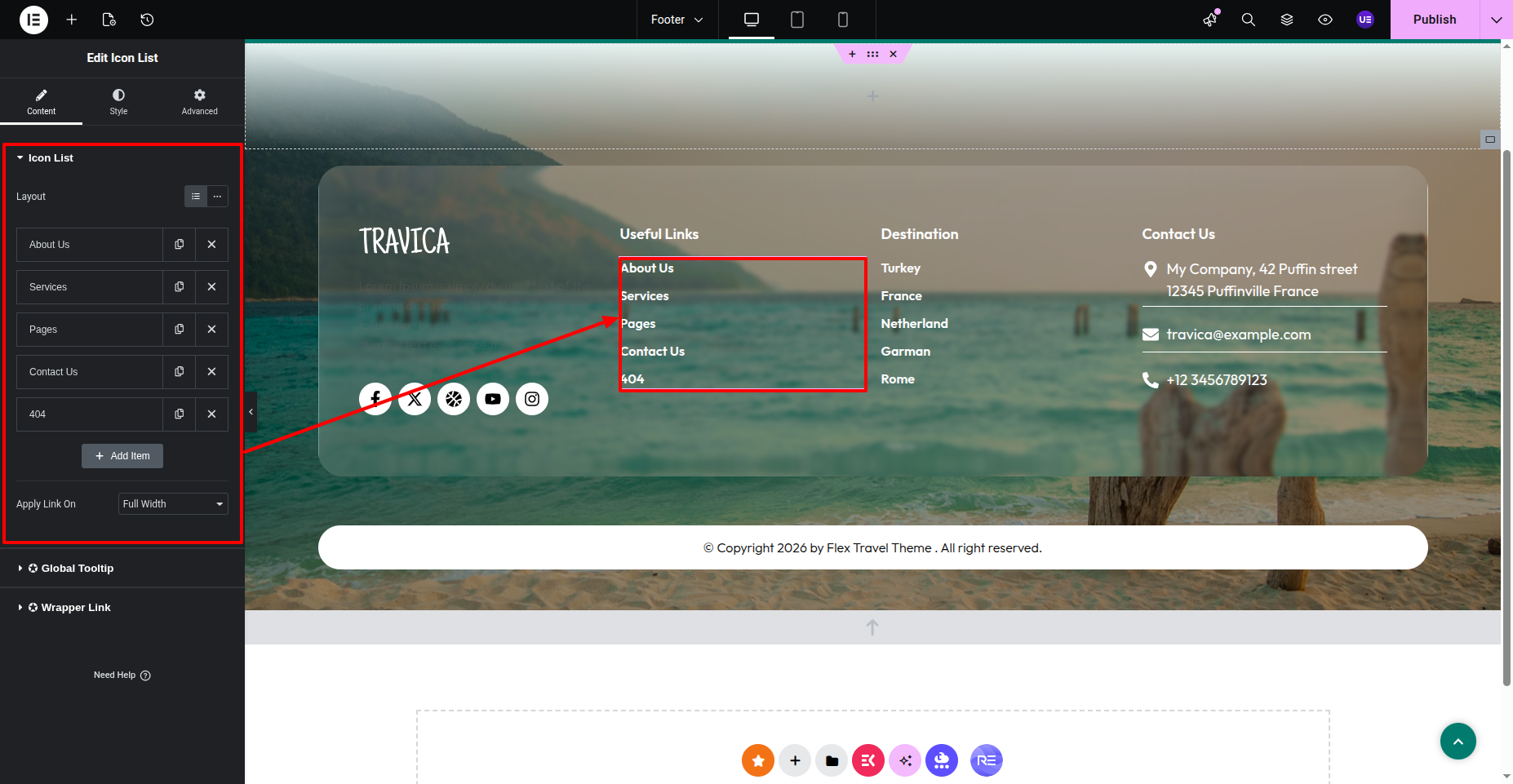This is how you may set up and add the Footer Section.