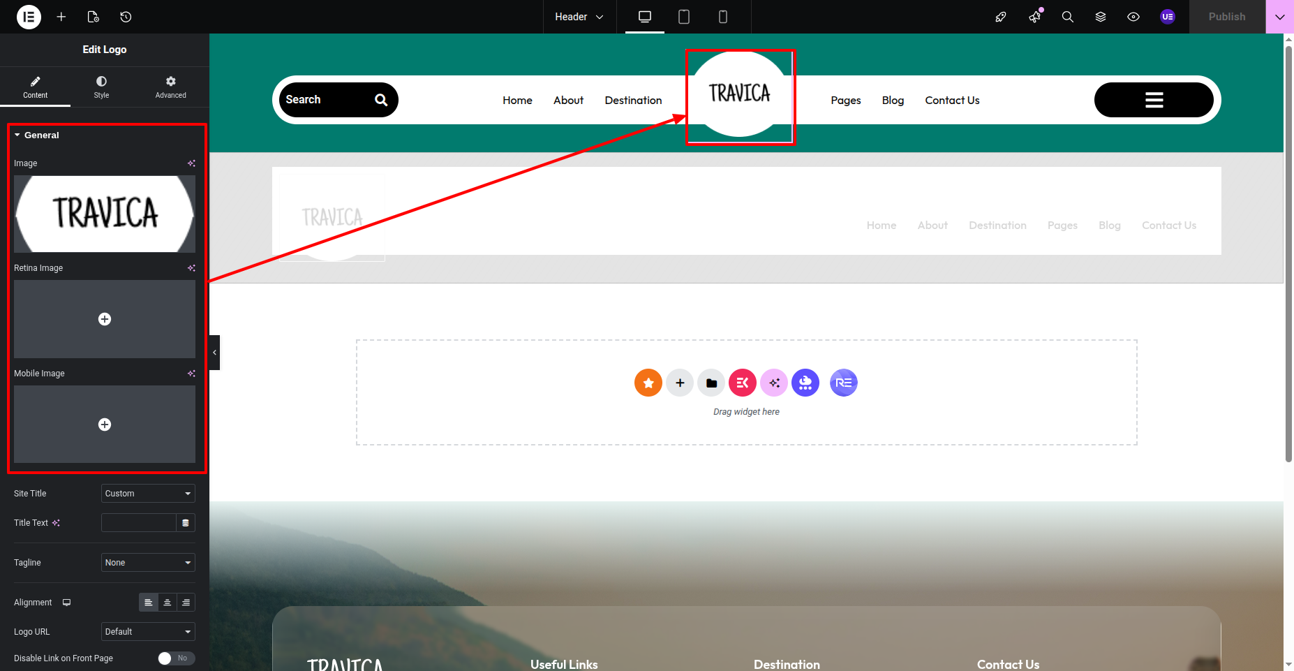 2) You have to go inside the header and edit content.