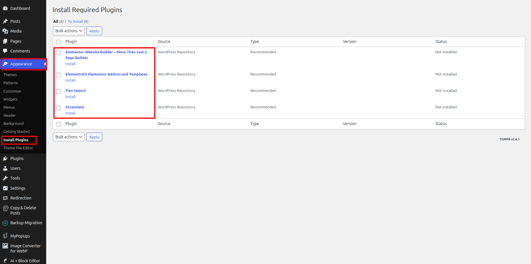 To install the necessary plugins, click the "Install Plugin" option.
