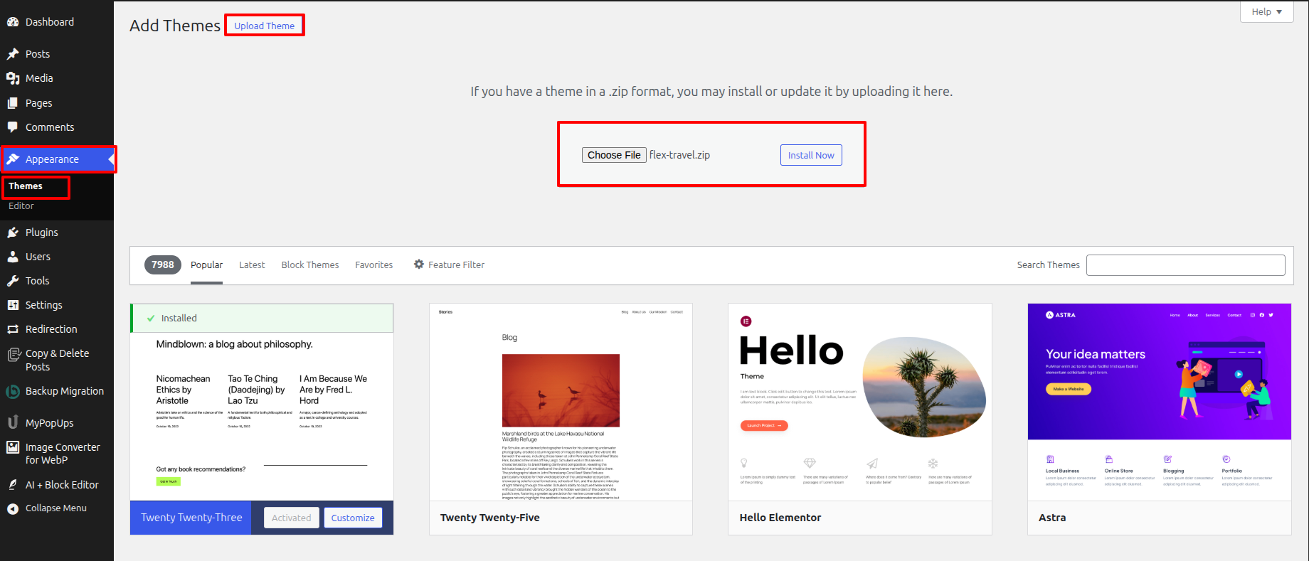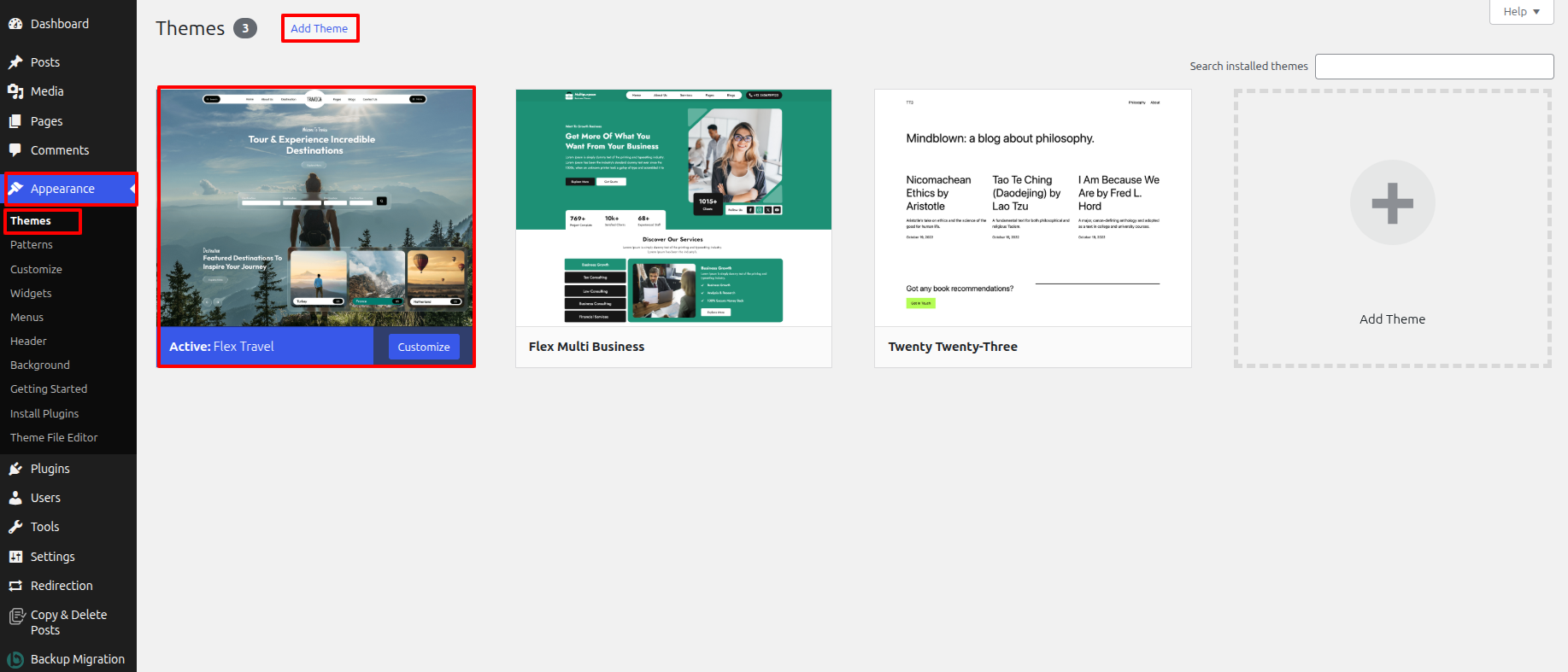 1-Use WordPress admin to install a theme.